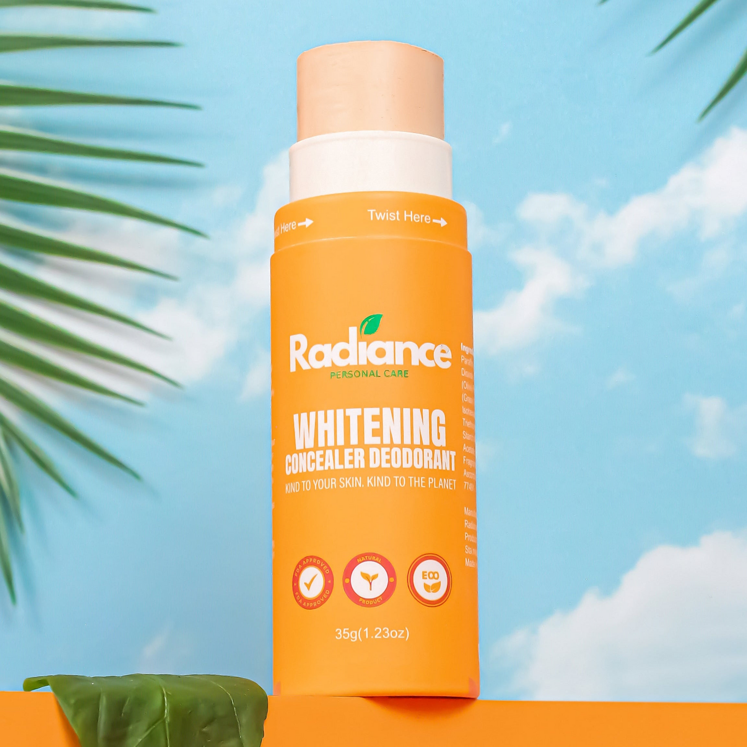 Swipe Radiance Whitening Concealer Deodorant evenly on underarms. Blend gently and let it dry for a smooth, natural finish.
