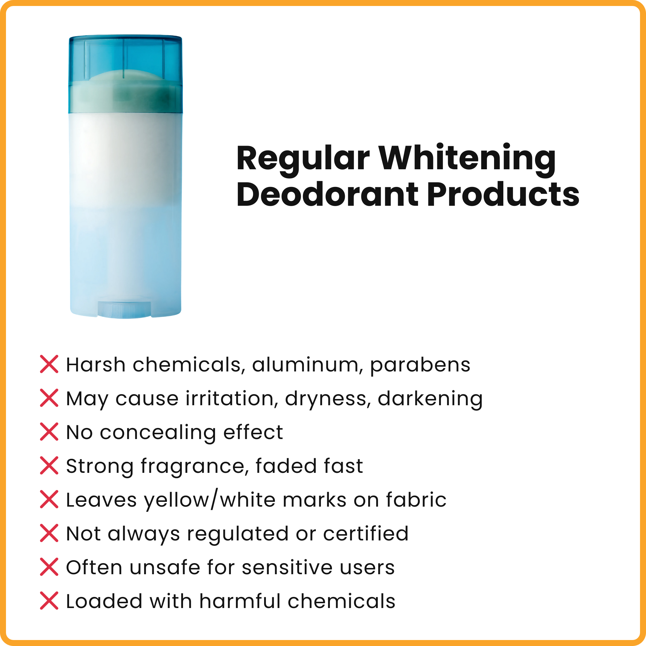 Whitening deos that stain your clothes or irritate your skin—making the problem even worse.